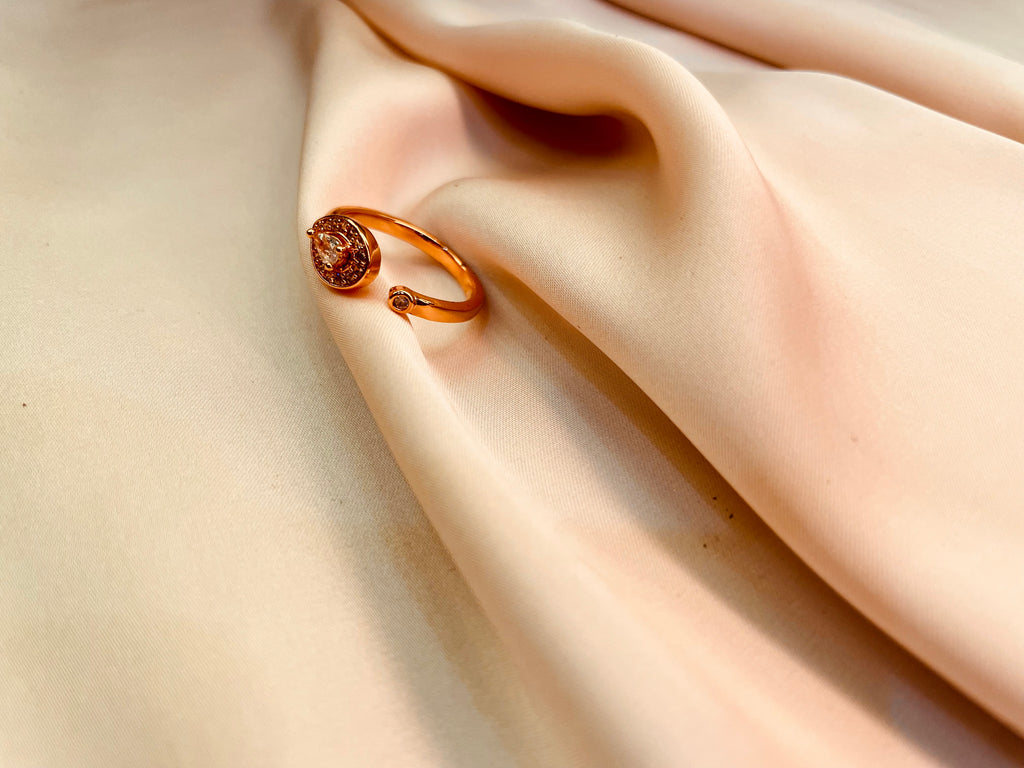 This geometric crystal stone open ring is a stylish and adjustable piece of jewelry that is also tarnish-free and crafted with premium quality.