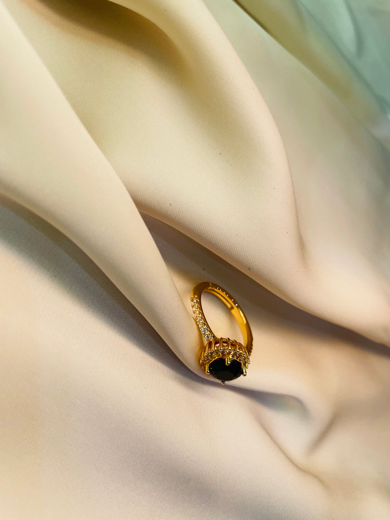 Golden Ring With Black Stone (Adjustable)- Tarnish Free